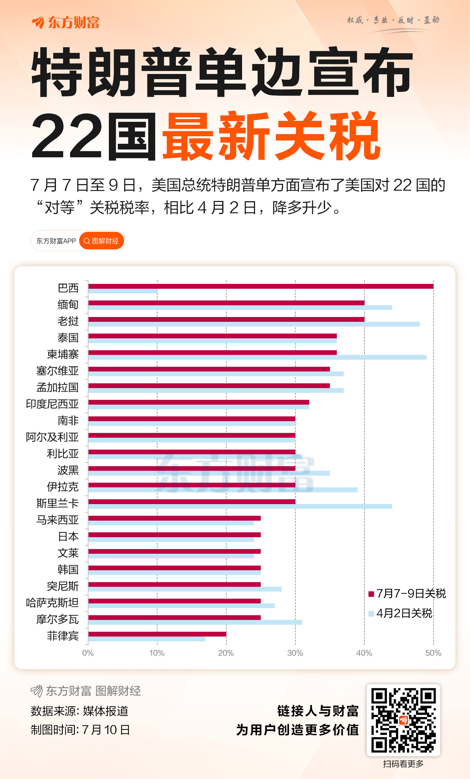 当地时间7月9日(周三),美国总统特朗普发动了7月以来的第二波“关税攻势”。他在社交...