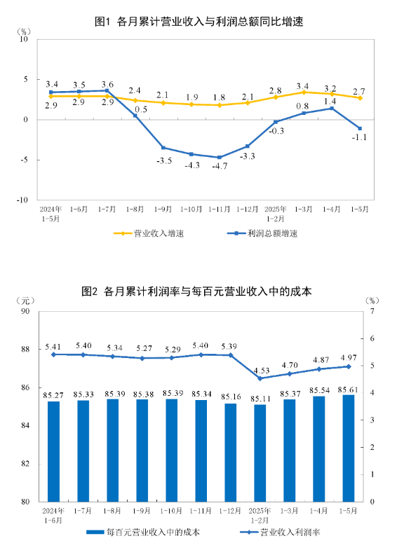 1—5月份,全国规模以上工业企业实现利润总额27204.3亿元,同比下降1.1%(按可比口径...