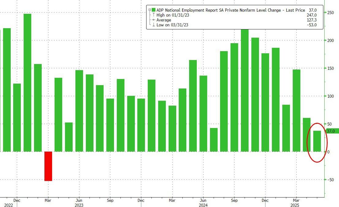 美国5月ADP就业人数增3.7万人,预期增11.0万人,前值增6.2万人。美国5月份的招聘速...